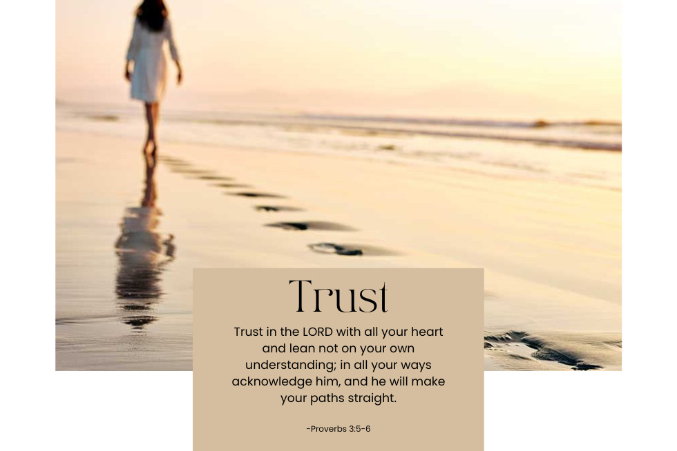Proverbs 3:5-6 says, “Trust in the LORD with all your heart and lean not on your own understanding; in all your ways acknowledge him, and he will make your paths straight.”