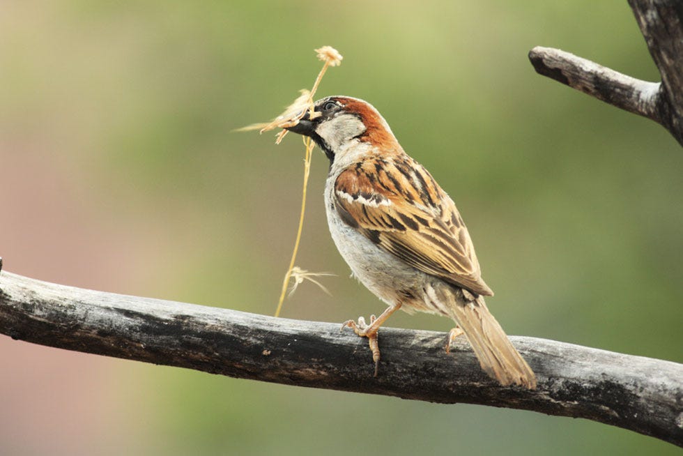 My eyes were drawn outside, where a mama sparrow was earnestly plucking thin strands from a twisted, discarded rope on the ground. With each strand freed, she returned to her nest high in a nearby tree. I watched her for quite a while, struck by her quiet confidence and steady determination.